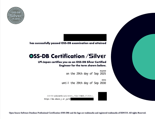 2025年9月、OSS-DB Silverに合格しました!パチパチパチパチ~♪